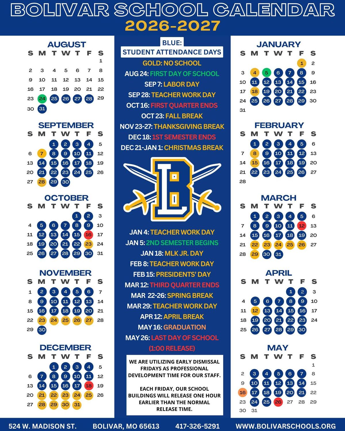 The Bolivar Schools 2026–2027 Academic Calendar is here!